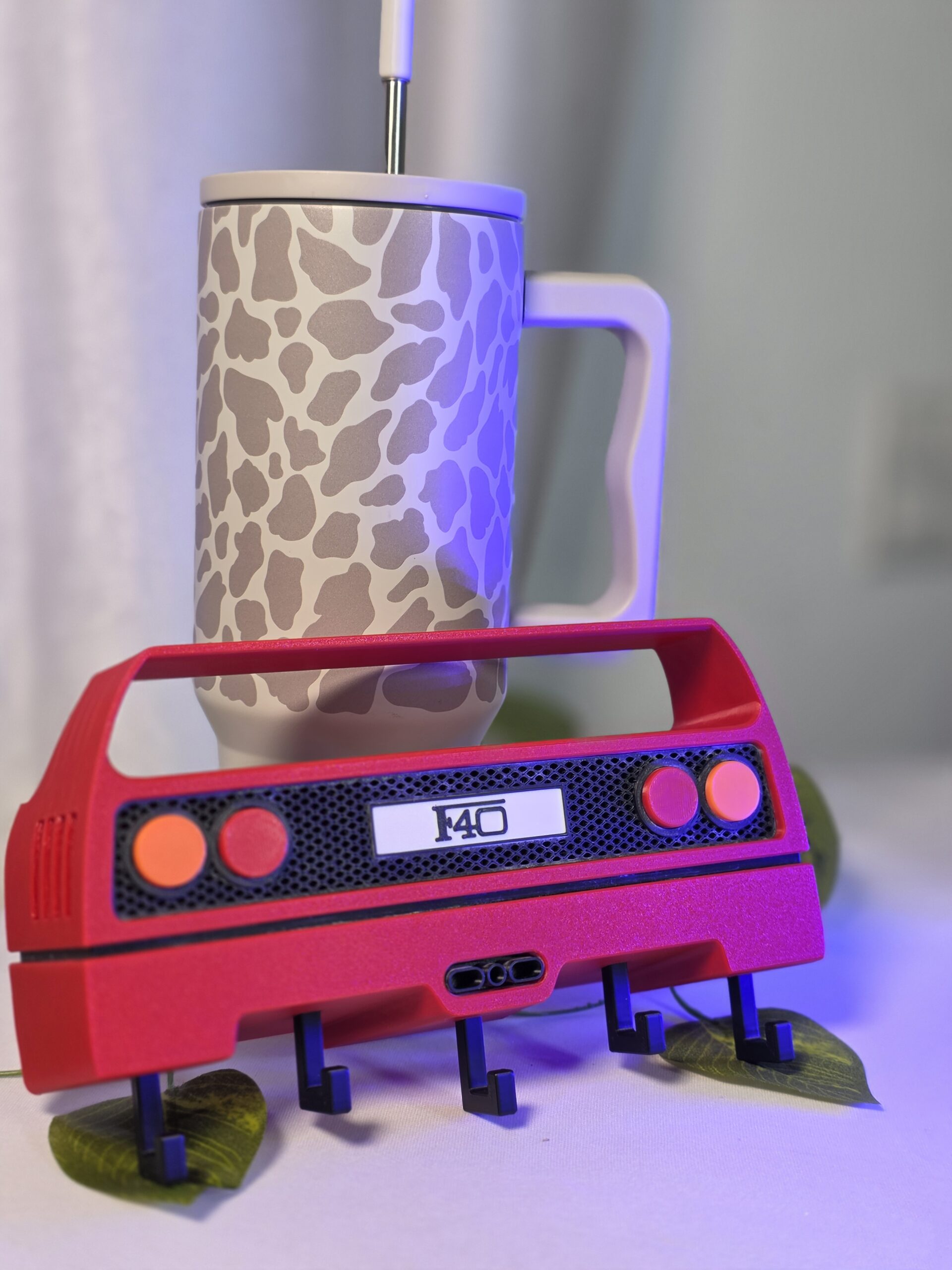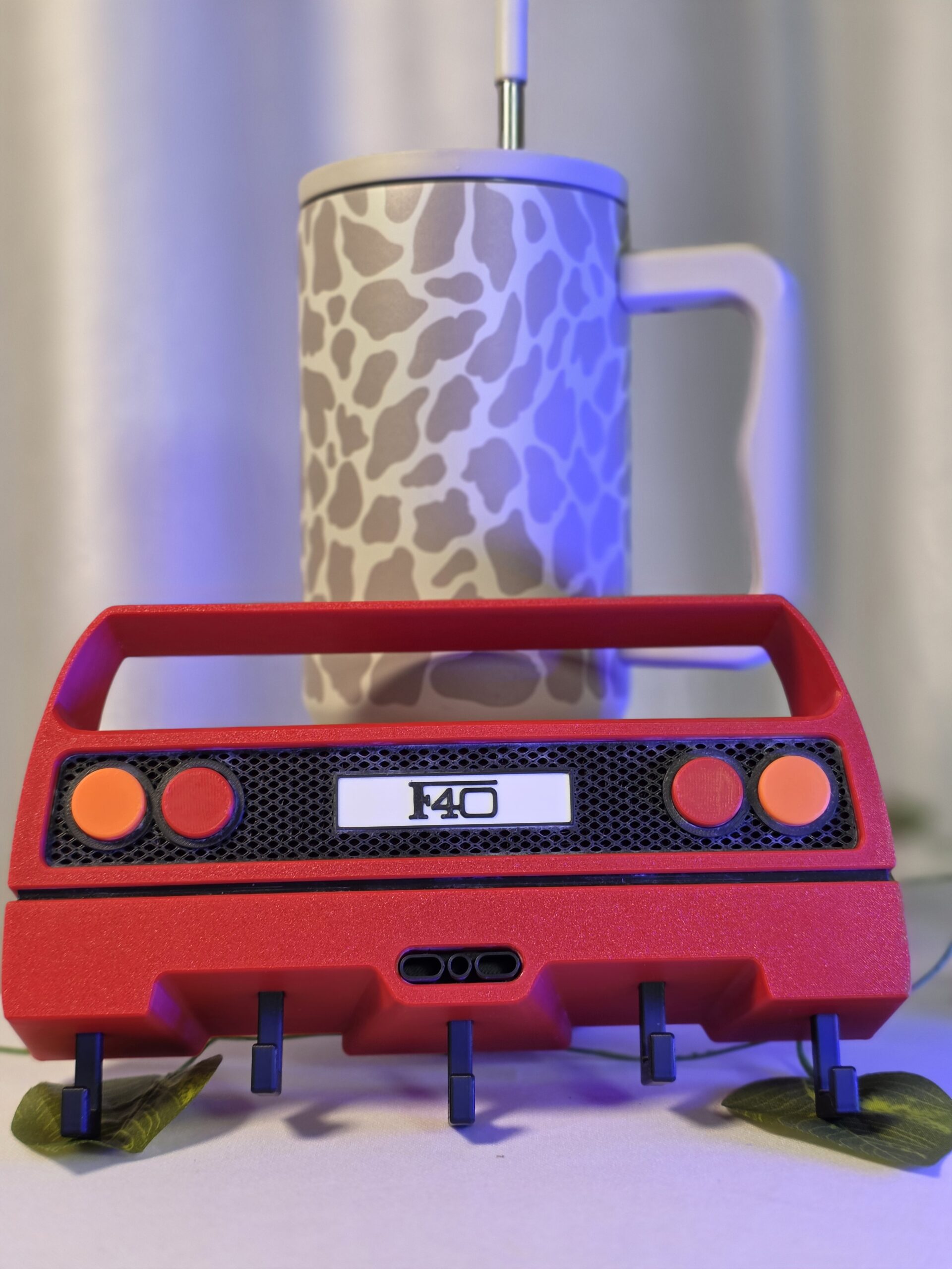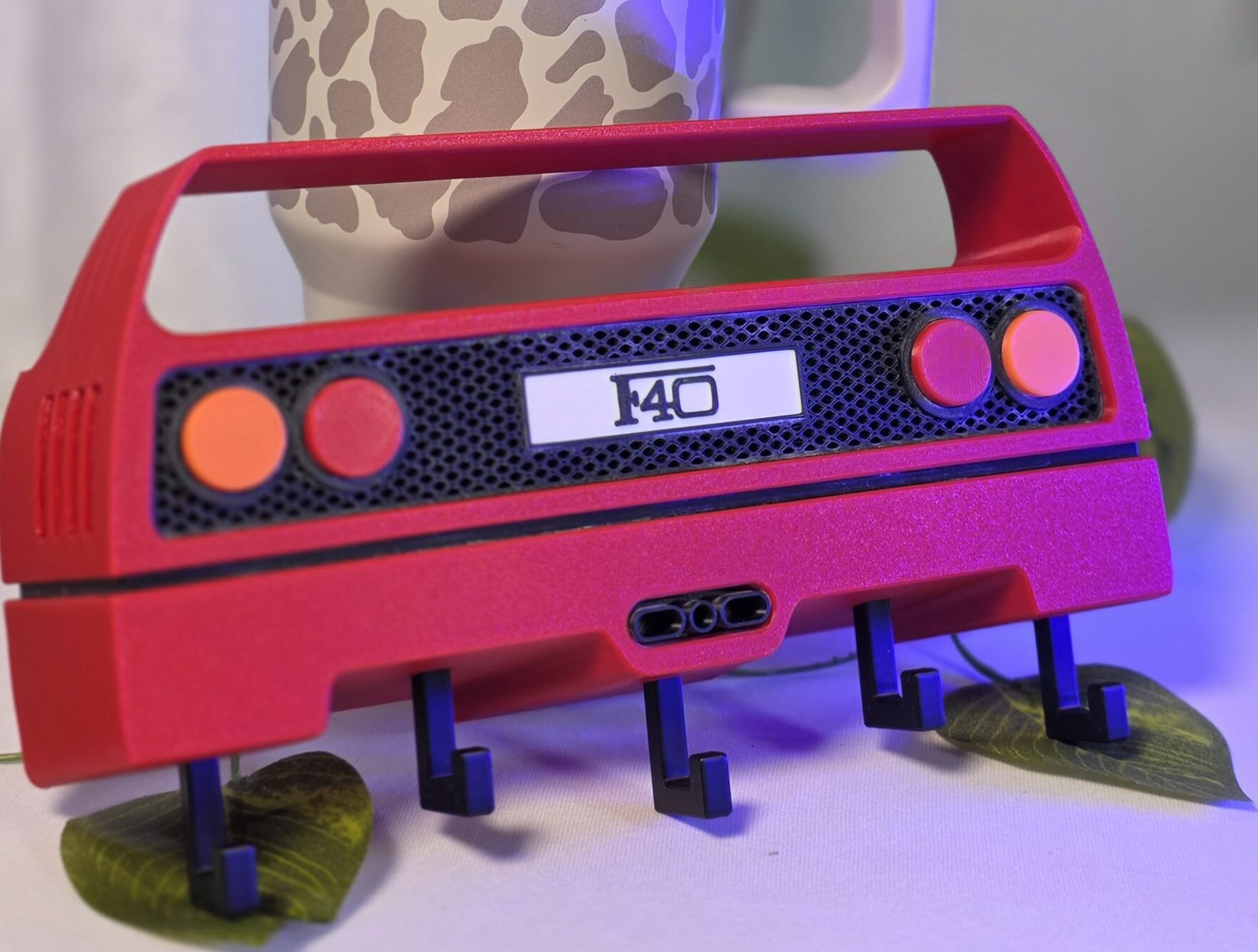 This 3D-printed Ferrari F40–inspired rear key holder features the iconic bumper shape with dual tail-lights and mesh-style panel. Equipped with sturdy hooks, it’s perfect for holding 5 keys – making it a stylish and functional addition to your desk or entry table.